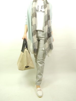カジュアルな組み合わせに着流しカーデを合わせれば細いパンツもスッキリ見えますね!アクティブ度80%、スタイリッシュ度20%。