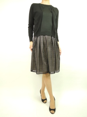 パンチングレースのお洒落なワンピース。切り替えのトップスがニット地で着やすい!エレガンス度90%、スタイリッシュ度10%。