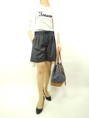 ロングカーデは今年顔ですね。ショートパンツと合わせて長さのアンバランスが今年の着こなし!アクティブ度80%、スタイリッシュ度20%。