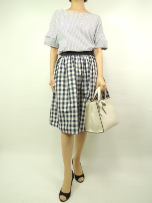 お袖にボリューム感のあるデザインはウエストを絞るとお洒落に着こなせますね!フェミニン度80%、エレガンス度20%。