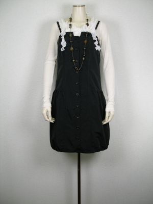 ふんわりバルーンシルエットのワンピースは、シャカシャカ素材。フリルカットソーとの甘口コーデも、モノトーンでまとめれば大人っぽく!フェミニン度90%、スタイリッシュ度10%。