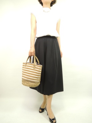 ボリュームのあるデザインが特徴のガウチョパンツには首の詰まったシルエットのトップスでスッキリコンパクトにまとめて!フェミニン度80%、スタイリッシュ度20%。
