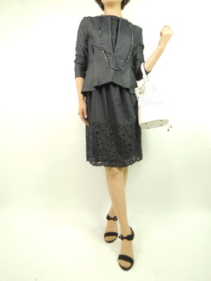 ネイビーの組み合わせは素材を替えると重くならない。学校行事に清楚に装って!エレガンス度90%、フェミニン度10%。