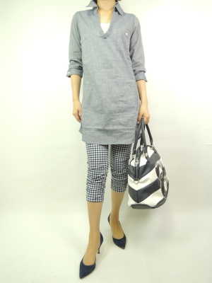 シャツチュニックはデイリーに欠かせないアイテムですね。ギンガムチェックと合わせてよりカジュアルに!アクティブ度100%。