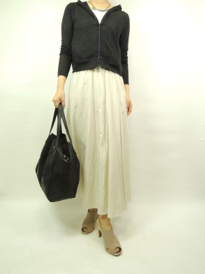 | 注目マキシ丈のスカートをパーカと組み合わせて大人のカジュアルに白×ネイビーでより爽やかコーデ!スタイリッシュ度80%、アクティブ度20%。 |