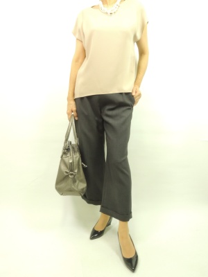 ダブルになったガウチョパンツ・・。シンプルな色の組み合わせはシックな秋の装い!スタイリッシュ度70%、エレガンス度30%。
