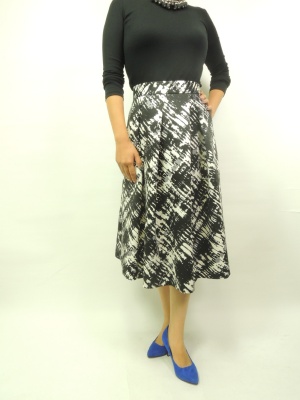 ミモレ丈のスカートはトップスをシンプルに、なおかつコンパクトにまとめると良い。モノトーンで決める大人のエレガント!エレガンス度90%、スタイリッシュ度10%。
