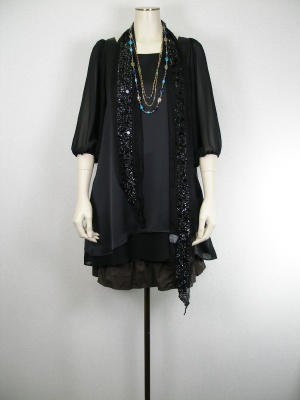 | 二枚重ねのフェミニンなワンピースをティアードのカジュアルスカートで合わせてみました。黒×茶のコントラストで大人っぽく着こなしてみました!エレガンス度80%、アクティブ度20%。 |