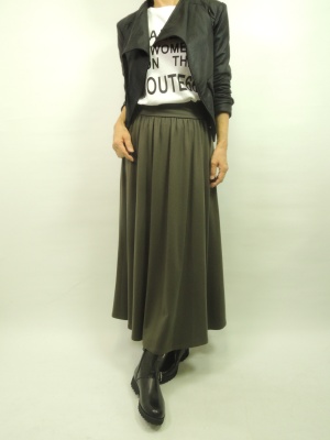 マキシスカートをブルゾンでコーデ。エンジニアブーツでマニッシュに決めて!スタイリッシュ度70%、アクティブ度30%。