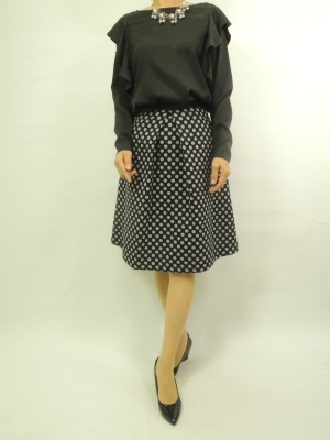 フリルブラウスのボリュームをスカートインすることでバランス良く抑えてメリハリのあるコーデに!フェミニン度80%、アクティブ度20%。