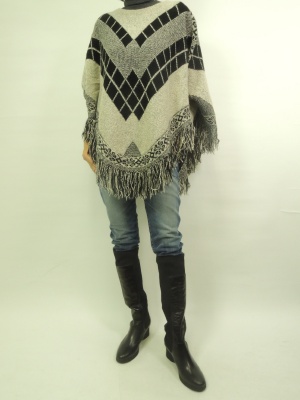ポンチョスタイルはデイリーにピッタリ。ボトムスを細身にして組み合わせるとスッキリ見えます!アクティブ度90%、スタイリッシュ度10%。