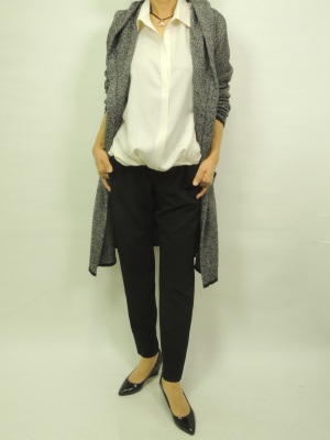 ゆるシャツにとろみぱんつで今年っぽく。カーディガン一枚あれば一段とオシャレですね!スタイリッシュ度80%、アクティブ度20%。