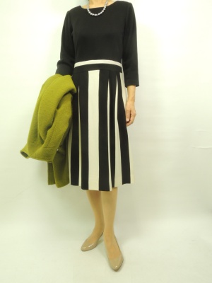 黒×白のメリハリのある色使いはそれだけで充分存在感があります。ちょっとお出かけに一着あると便利!エレガンス度90%、フェミニン度10%。