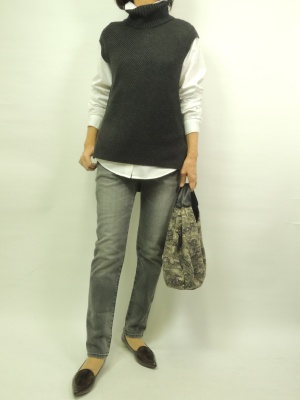 トレンドのニットベストはデニムに合わせでデイリーにもオシャレな秋のトレンドで!アクティブ度70%、スタイリッシュ度30%。