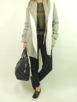 ジャージの羽織りはカジュアルアイテムに欠かせない。二枚重ねる様なデザインがオシャレ!アクティブ度70%、スタイリッシュ度30%。