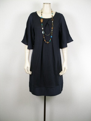 シルクのお袖がエレガントなAラインワンピース。重ね着せずシンプルに着こなせばお出かけ着に!エレガント度70%、スタイリッシュ度30%。