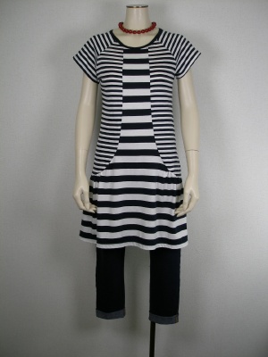 ボーダーワンピとレギンスで楽チンな日常着。でも一癖あるデザインを選べは、手抜きに見えません!アクティブ度100%。