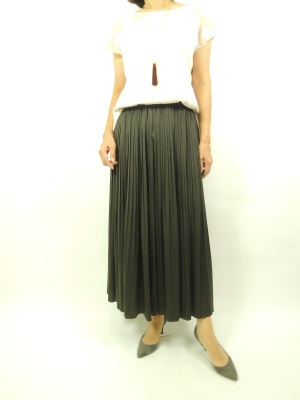 スカーチョは夏の始めから出始めますが プリーツ使用はこれから流行してますね。 大人っぽくオシャレに着こなせるのも このスカーチョならではです。 まだトップスはノースリーブで軽めにまとめてみました。