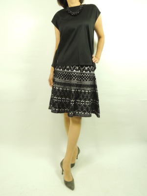 今回着用したププラのブラウスは一見普通のブラウスに見えますが、 前と後ろどちらをメインにしても着れる2WAYタイプのブラウスです。 前と後ろで少しデザインが違うので雰囲気や印象も変わります。 全体を黒で統一。ブラウスがシフォンで スカートも白地の柄がはいっていますので重く見えません。 シンプルブラウスなので首回りがキラッと光って 豪華なイメージになります!