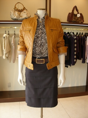 アニマルのブラウスもダークカラーで大人っぽく。通勤からディナーまで一着で活用できる!スタイリッシュ度90%、エレガンス度10%。