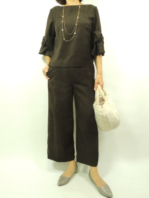 ヌークの人気リボン袖ブラウスがこの秋セットアップで再登場しました。 生地もフェイクスエードで可愛らしさも持ちつつ、カッコよくも見えます。 (色違いもございます) トップスのブラウンはそのままインしなくても自然に着て頂けます。 ブラウンにはピンクの色物入ったネックレスを合わせました!