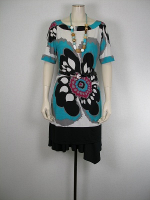 大きな花のデザインが印象的なワンピース。スカートを合わせるとミニ丈が気になりません。色で楽しみたい一着です!エレガンス度100%。