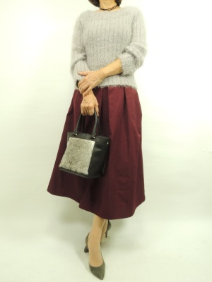 シンプルが多いこの秋のデザイン。 甘口のお洒落に欠かせないのはAライン、ヌークのマキシスカート。 それも流行のボルドーを着こなす。 トップスはコンパクトな形だが トラッゾドンナのフワフワした糸のお洒落ニットでバランスをとって!