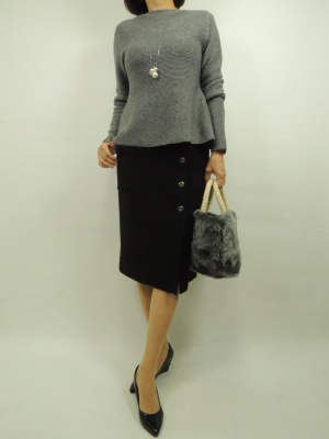 そろそろ年末の行事が多くなりますね。 ランチの回数も増えそう。 こちらのニットはペペラムラインのキュートなシルエットがオシャレ。 合わせたスカートは裏からレースがのぞくタイトスカートです。 キュートさの中にエレガンスの要素を織り交ぜたコーディネート!