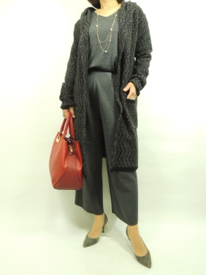 ベアトリスのセットアップのご紹介です。 こちらはパンツの組み合わせでニットソーの素材です。 (カットソーとニット地の事) 価格も上下セットのお値段となっています。 シンプルなデザインですが、セパレートにも 合わせれますので重宝したいアイテムですね。 イエリの軽めのコーディガンと合わせました!