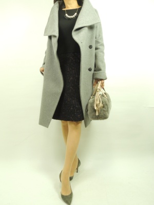 ワンピースハやっぱりこの時期便利ですね。 切り替えのワンピースハ一枚できちんと感が出るので この季節とても重宝します。 コートは今期のトレンドの形をチョイスしました!