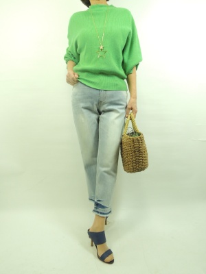 デニムファッションはデイリーには欠かせません。 今回は合わせたニットがポイントです。 やや太めの袖ですが 抱くしあげることでよりボリューム袖に変更します。 着こなし一つでオシャレになるニットは デイリーに着やすい一枚です!