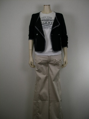 綺麗目のニットジャケットをロゴTとコードレーンの美脚パンツでカジュアルダウンしたコーディネート。VERY4月号P121を参考にしたアレンジです!スタイリッシュ度60%、アクティブ度40%。