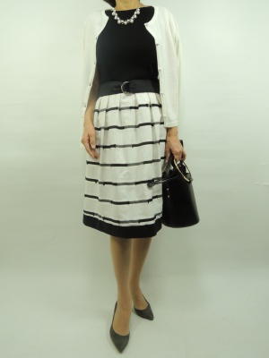 今年らしいウエストベルトがあるタイプのワンピースです。 ウエストのベルト部分にポイントが来ることによって メリハリのついたデザインになっています。 切り替えで異素材になっているので ワンピースぽっく見えないのに 楽にさっと着れる一枚あると便利です。 シンプルなカーディガンを合わせました!