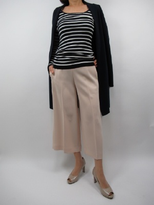ボーダーはカジュアルなイメージですが このニットは首回りの開きが広く 女らしいシルエットです。 濃いピンクのパンツで柔らかさを出して。 ダンガリーのトレンチとのコーデにしてみました!
