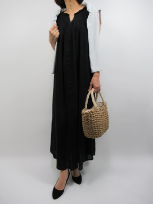 エレガントの要素が強いワンピース。 しかし今年はロング丈のカジュアルワンピースが流行っています。 このワンピースもコットンレーヨンの涼しい素材を使用。 しかもデザインが体を締め付けない、 ゆるっとしたシルエット。 ちょっとファミリーとお出かけの休日に着たい一枚。 温度調節するカーデを肩にかけて!