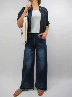 バギーデニムで足長効果。 お尻をすっぽり包む股上深めのバギーパンツは 足長に見せてくれる優れもの。 今年っぽさを出すために トップスはコンパクトにまとめたい。 短丈のブルゾンはウエストラインで止まるので バランスのとれたコーディネートになる!