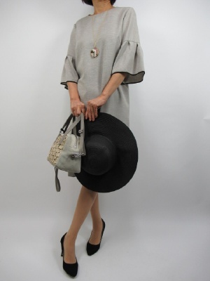 一枚で完成するワンピースハ 特に夏のお出かけには欠かせません。 ストーンとしたシルエットは締め付けがないので 着ていて楽なのがいいですね。 洗える素材ですので、これからの季節には ピッタリですね。 ふんわり袖の袖口が黒の縁取り。 ベーシックな色を引き締めてくれます!