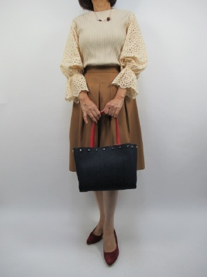 トラッゾドンナのニットは身ごろがリブになっていて お袖が異素材のカットワークレースになったデザインです。 ベージュのお色も優しい印象を与えてくれます。 合わせたキャメルのスカートはタック入りのボックススカート。 ハリ感のあるスカートなのでニットで柔らかく合わせました。 お色をグラデーションにしたので黒のサッシュベルトをポイントしました!