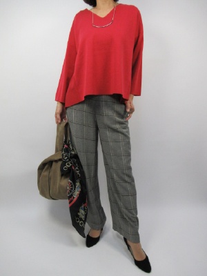 チェック柄のワイドパンツはこの秋のトレンドですね。 今回はアッシュローブの新作をご紹介します。 丈感もヒールで合わせてベストバランスです。 キレイ色のニット。特にゆるっとしたシルエットが このパンツにとてもぴったりと合いますね!