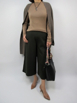 秋の定番となったロングコーデガンは これからの季節活躍する一枚です。 ぼろムスも深いカーキでシックにまとめてみました。 全体に無地なのでアクセでポイントをつけて!