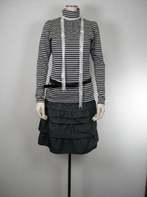 ボーダーのオーソドックスなカットソーもティアードスカートと合わせるだけでオシャレな外出着に変身しますね。アクセントは細ベルト!フェミニン度80%、アクティブ度20%。