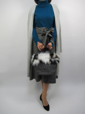 グレンチェック柄はどうしても地味なイメージですが こんな風な大きなリボンをメインにした スカートにしたら甘口大好きな人にも 受け入れやすくなりますね。 ブルーのキレイ色をトップスに入れることで 明るい印象になります!