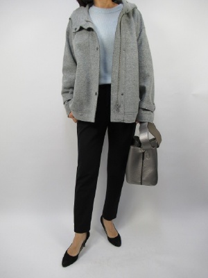 コートの出番ですがロングよりショート丈の方がスッキリ見えて 動きやすい。ふんわりデザインなので立体感が出て ボトムスとのバランスが取れる。 アッシュローブの細身パンツも 程よい細さで足長効果が期待できる一本です!