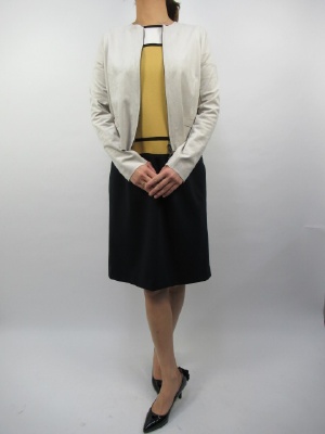 三色使いの配色ワンピースは生地がカットソーなので着心地もよく、動きやすいのが特徴。半袖なのでトップスにノーカラーのJKを合わせればちょっとお出かけにもきちんと感が出る一枚です!
