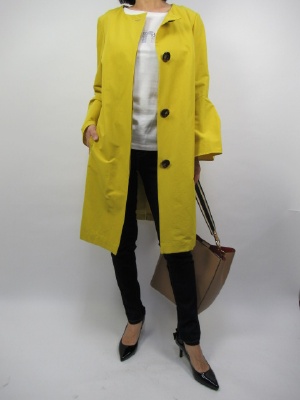 今年はデニムの色が濃いほうがオシャレ度がアップします。カジュアルなカットソーに上品なデザインの春コートを合わせる。ネイビーに黄色がよく映えるお洒落なスタイリッシュコーデ!