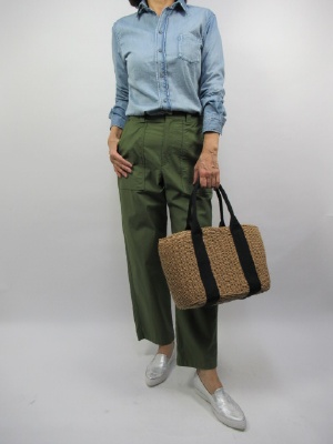 着やすいシャツもダンガリーで選ぶとカジュアルなスタイリングが楽しめます。ベイカーパンツは少し緩めがシャツには良く合う。ブルー×カーキの色合わせはカジュアルな出入りファッションに欠かせない組み合わせですね!