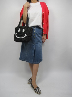 デイリーにもお洒落を楽しみたいけれどONのようなコーデは堅くるしい。デニムスカートにすればパンツが苦手の人もデイリーを楽しめるはず。赤のカーデで引き締めて!