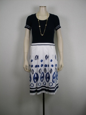 清楚なワンピースにはゴールドの小物使いで、無難に見せない工夫を!フェミニン度90%、スタイリッシュ度10%。