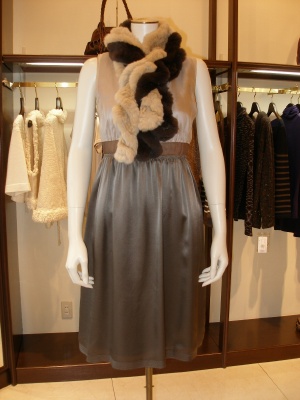 結婚式シーズン。シルクのワンピースもベージュ系で上品に!エレガンス度100%。