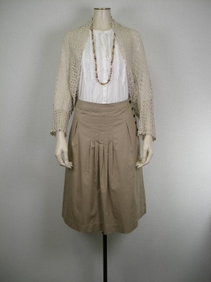 白〜ベージュのナチュラルカラーでまとめた優しい着こなし。カットソーはスカートにインしてスッキリと!フェミニン度100%。
